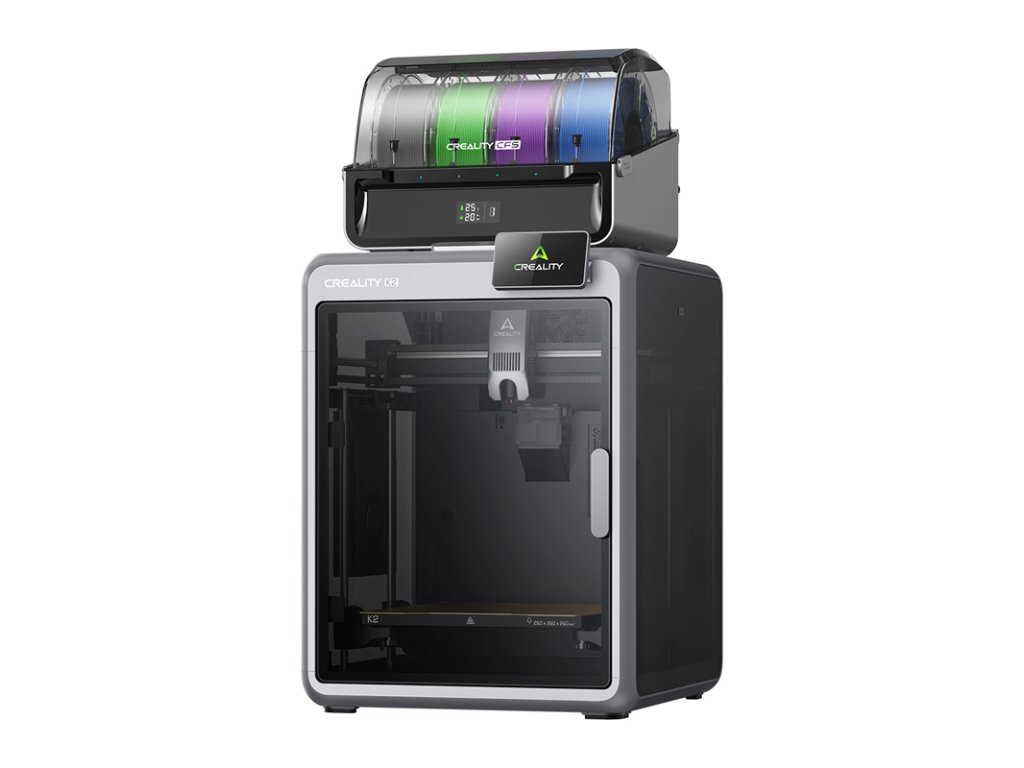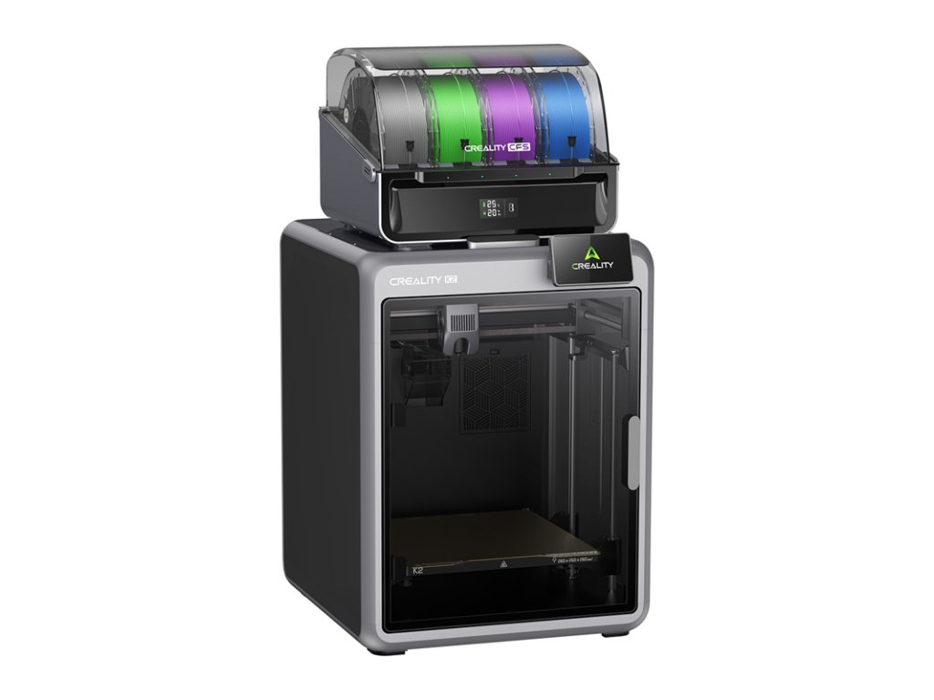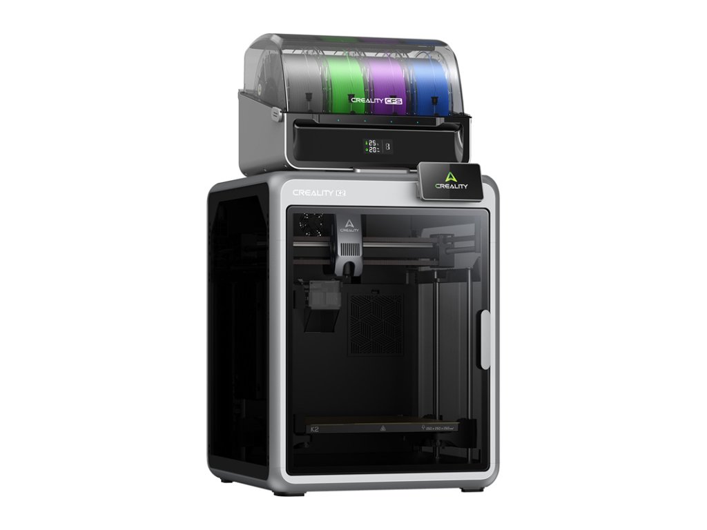 Tlačiareň K2 Combo bola vyvinutá na kreatívnu viacfarebnú a viacmateriálovú tlač. Integrovaný systém CFS automaticky prepína medzi vláknami bez akéhokoľvek zásahu používateľa. Podporuje až 4 jednotky CFS, čo znamená až 16 rôznych farieb pri jednej tlači. Systém je plne integrovaný so systémom Creality OS a softvérom Creality Print, čo uľahčuje správu materiálov.