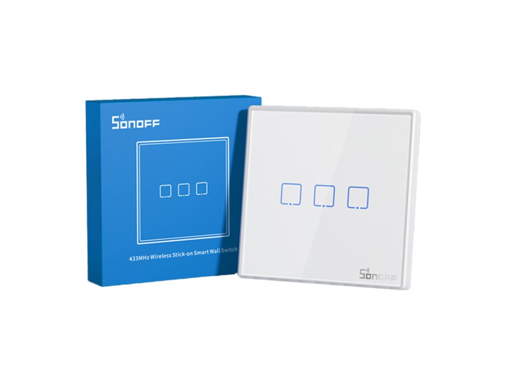 Inteligentný bezdrôtový nástenný spínač Sonoff T2EU3C-RF 433MHz (3-kanálový)